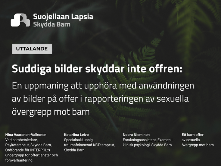 This statement from child-rights NGO, Protect Children is addressing the use of images of child sexual abuse (CSA) victims in news posts and articles, both blurred and unblurred. This statement has been written by Nina Vaaranen-Valkonen, Executive Director, Psychotherapist, Katariina Leivo, Senior Specialist, Noora Nieminen, Research Assistant, & a Child Victim of Child Sexual Abuse.